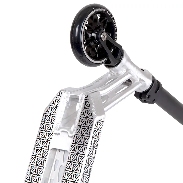 Дека изготовлена из нового прочного алюминиевого сплава 6069 с дополнительной термической обработкой T6. Имеет длину 460 мм и ширину 120 мм.